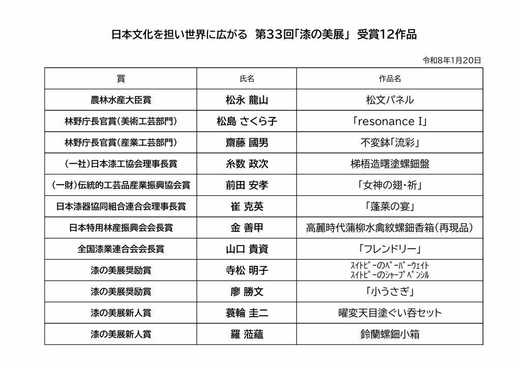漆の美展を令和8年1月21日から1月26日まで開催いたします。